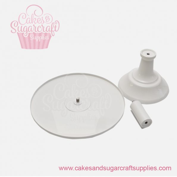 10 inches diameter top, suitable to carry up to 14 inches bottom for tiered cakes.